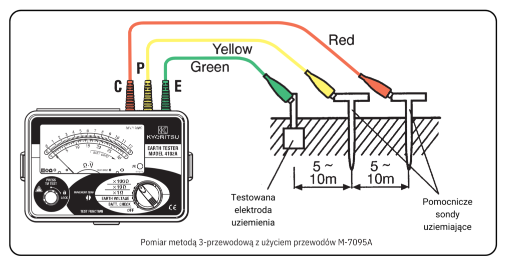 Użytkownik wykonuje pomiary rezystancji uziemienia w zakresach ×1 Ω, ×10 Ω oraz ×100 Ω, dzięki czemu łatwo dopasowuje zakres do badanej instalacji. W zależności od warunków pomiarowych miernik pracuje metodą klasyczną 3-przewodową lub uproszczoną metodą 2-przewodową. Takie rozwiązanie ułatwia pracę tam, gdzie rozmieszczenie elektrod jest ograniczone. Analogowy wskaźnik umożliwia bieżącą ocenę stabilności wskazań.
