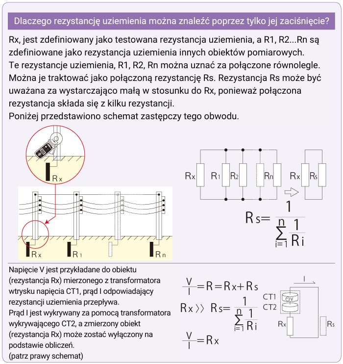 KEW4200 realizuje pomiar poprzez wprowadzanie napięcia testowego oraz jednoczesną detekcję prądu za pomocą przekładników prądowych. Metoda ta opiera się na pomiarze impedancji pętli uziemiającej w układach z wieloma punktami uziemienia. W rezultacie eliminuje konieczność stosowania elektrod pomocniczych. Jednocześnie producent wskazuje, że pomiar nie jest możliwy w przypadku pojedynczego uziemienia.